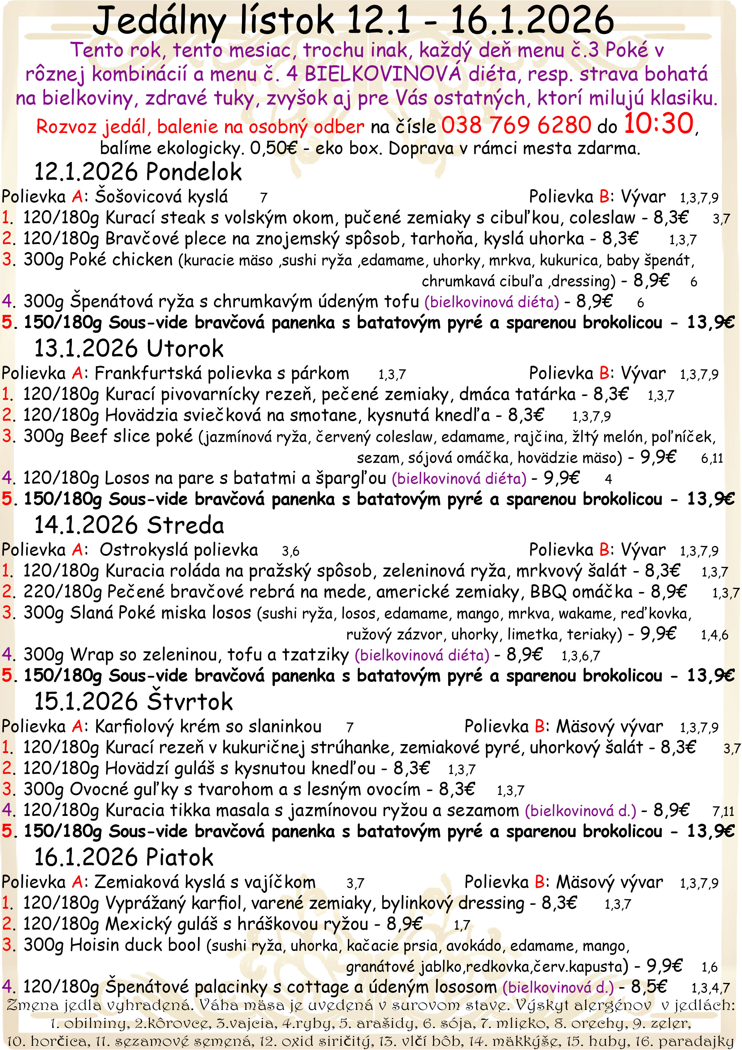 Jedálny lístok je založený na zopár dobrých kulinárskych jedlách, ktoré si myslime a dúfame že všetkým pochutia a každý si nájde to pravé jedlo pre seba.